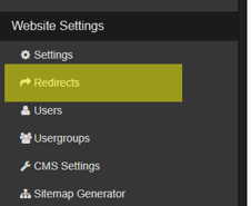 - Navigate to the General Settings section of the CMS, then select Redirects.