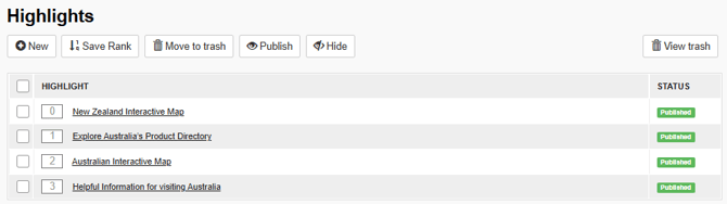 - Save Rank: Scroll to the bottom of the page to locate your Highlight that is HIDDEN / not yet published and enter the number or rank which will set the order that your Highlights will appear in within this list, it is not compulsory to add a rank.