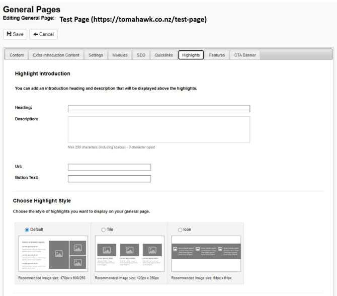 How to select Highlights to display on a General Page