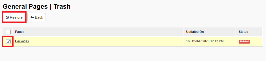 Deleting and Restoring a Page | CMS